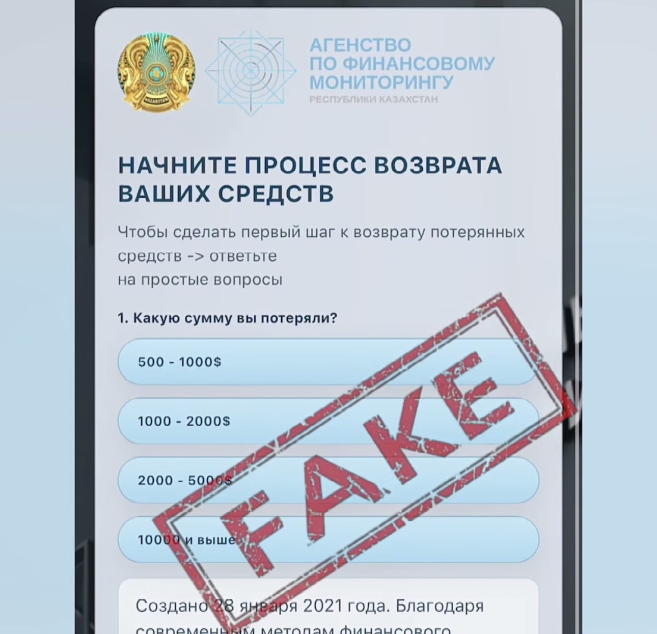 В АФМ подчеркивают, что такие сайты и формы являются мошенническими и направлены на сбор личной информации и завладение средствами граждан.